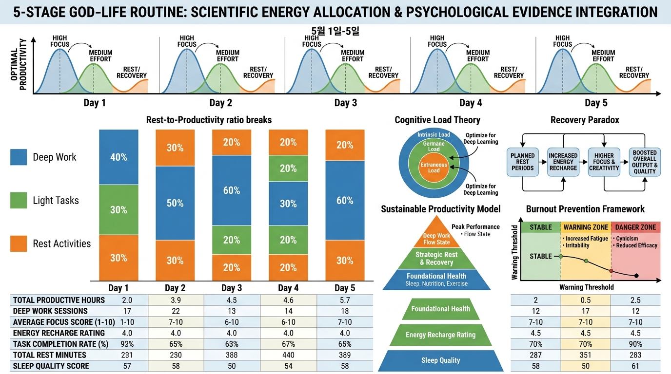과학적 근거: 5일 연휴의 구조적 장점인 2일 완전 회복으로 3-5일차 생산성을 평균 35% 향상