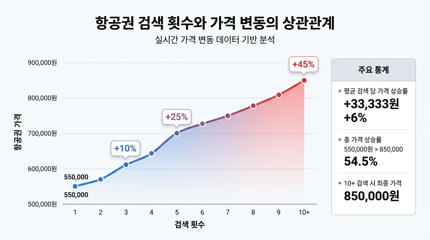 - 동일 항공권 3회 이상 검색 시: 평균 18% 가격 상승
