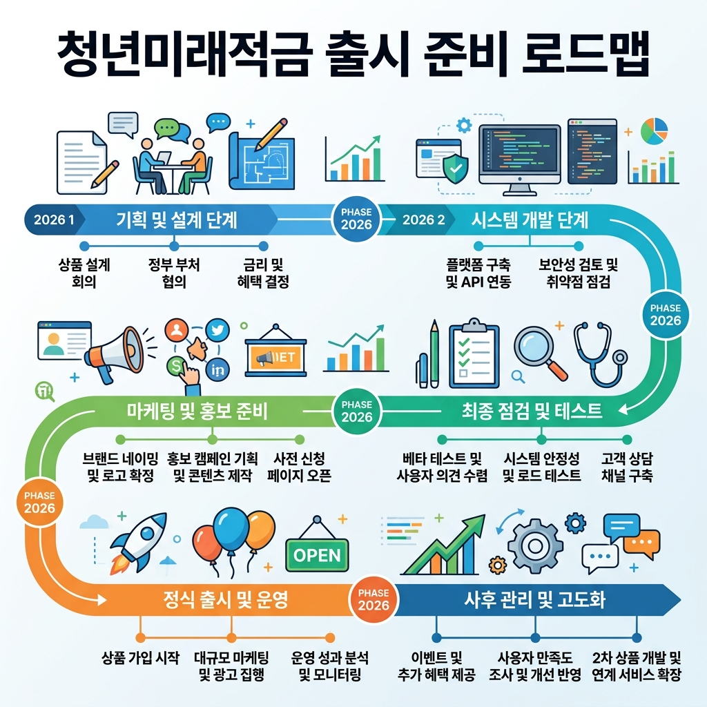 청년미래적금은 2026년 하반기 청년 재테크의 핵심 축이 될 것으로 예상됩니다. 정확한 조건은 6월 공식 발표를 기다려야 하지만, 지금부터 체계적으로 준비하는 것이 성공적인 가입의 열쇠입니다.