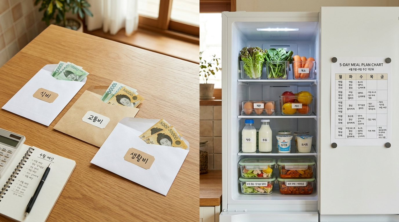 식비 영역 (60%): 6만원을 배정하되, 기존 냉장고 재고를 최대한 활용하는 재고 순환 시스템을 구축합니다. 연휴 전 재고 조사를 통해 필수 보충 품목만을 선별 구매하여 식비 효율성을 극대화합니다.